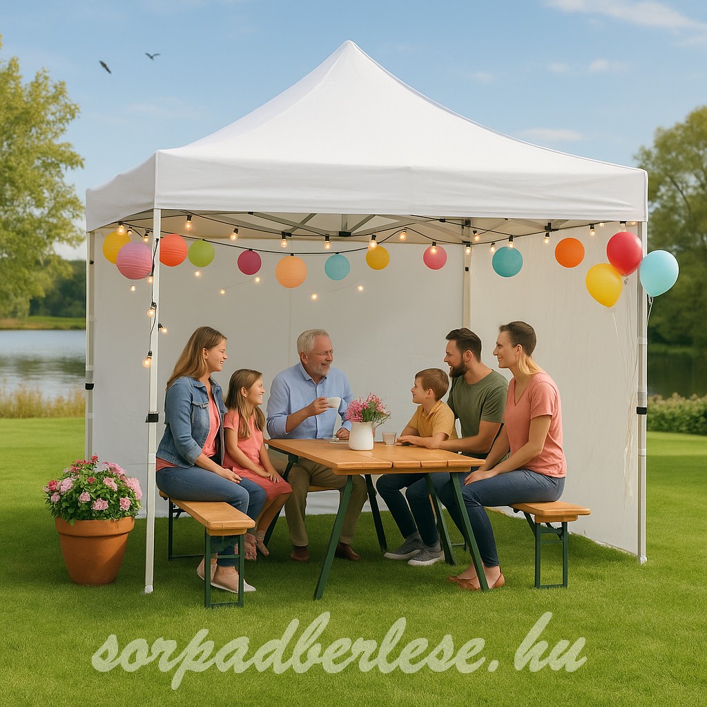 Kültéri esemény esetén érdemes sátrat bérelni az időjárás kiszámíthatatlansága miatt. - Mi szállítjuk el és vissza a termékeket, valamint telepítjük, bontjuk.